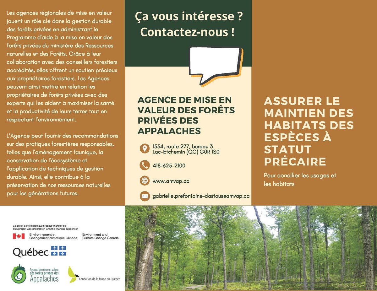 Votre lot boisé comprend un des éléments sensibles mentionnés ci-haut ? Contactez l'Agence ou votre conseiller forestier pour connaitre les modalités d'admissibilité au renouvellement et une bonification de votre plan d'aménagement forestier.